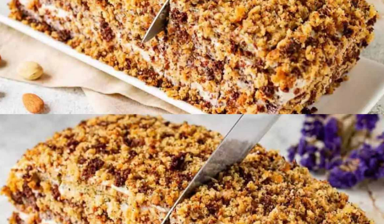 Прикрашаю подрібненою крихтою з обрізків коржів. Торт кладу в холодильник на 1-2 години. Готовий десерт розрізаю на шматочки та подаваю з чаєм!