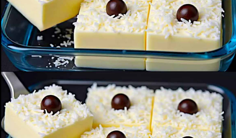 Одразу ж посипаю кокосовою стружкою і відправляю у холодильник на 3-4 години. Потім нарізаю шматочками.
