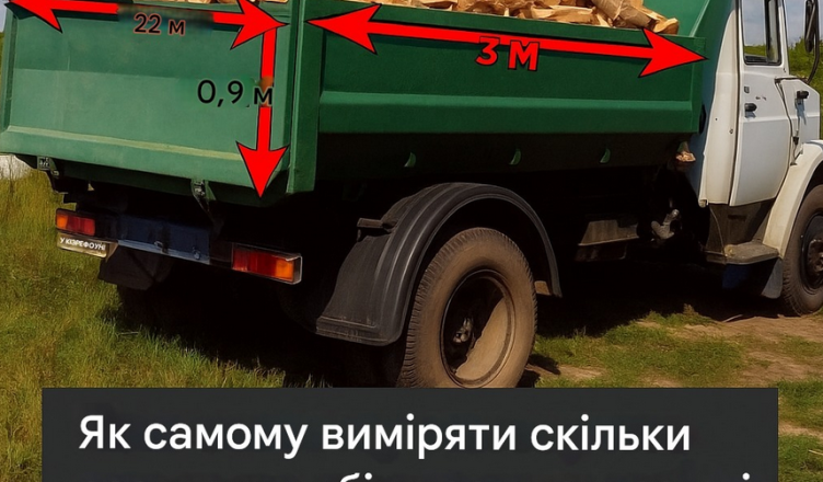 Для прорахунку необхідно визначити всі розміри кузова, також довжину дров у ньому. Просто поміряйте все рулеткою.
