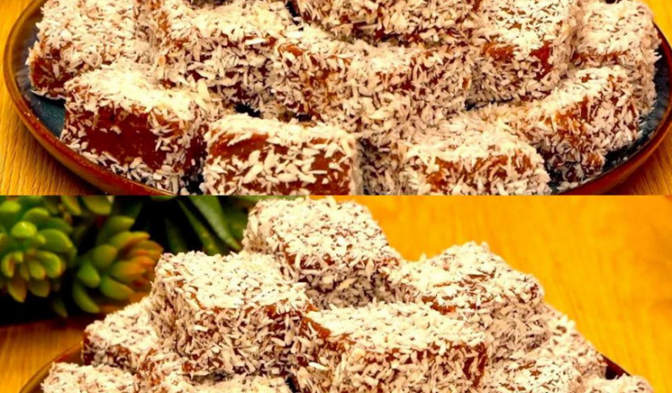 Наріжте десерт порційно та обваляйте у кокосовій стружці.
