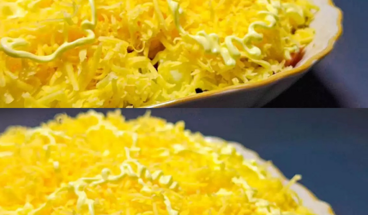 Натираю на терці сир, прикрашаю сіточкою із майонезу.
