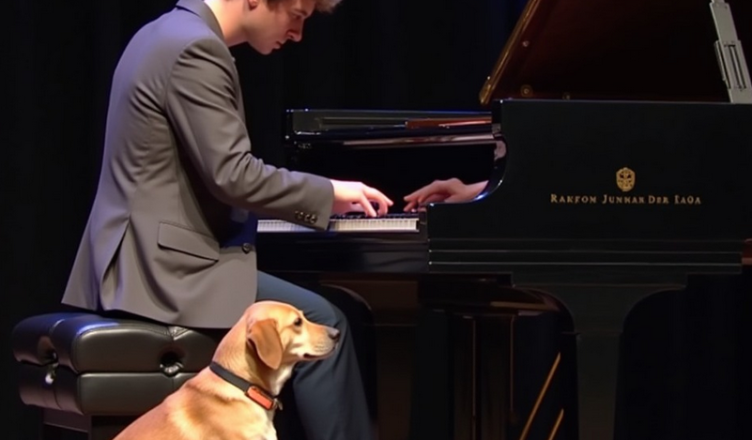 Замість того, щоб зупинитися, Анна продовжила, а спокійна присутність собаки поглибила емоції її виступу.