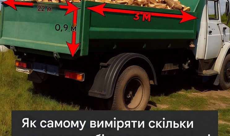 Для прорахунку необхідно визначити всі розміри кузова, також довжину дров у ньому. Просто поміряйте все рулеткою.