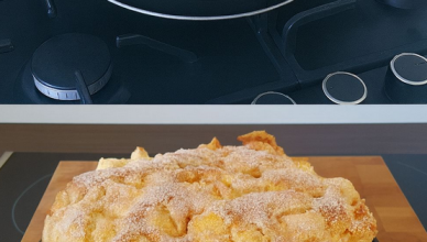 Жир для форми150 г маргарину або вершкового масла м’якого120 г цукру1/2 пакетика розпушувача220 г борошна1,5 кr очищених від шкірки та серцевини яблук 3